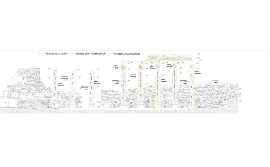 Restorasyon projesinde, yapının statik güçlendirilmesi, malzeme koruma çalışmaları ve eksik elemanların aslına uygun tamamlanması hedeflenmiştir. Yıpranmış döşeme taşları, tahrip olmuş sütunlar ve duvar örgüsündeki bozulmalar için koruma ve onarım yöntemleri belirlenmiş, yapı elemanlarının bütüncül şekilde korunarak gelecek nesillere aktarılması amaçlanmıştır.